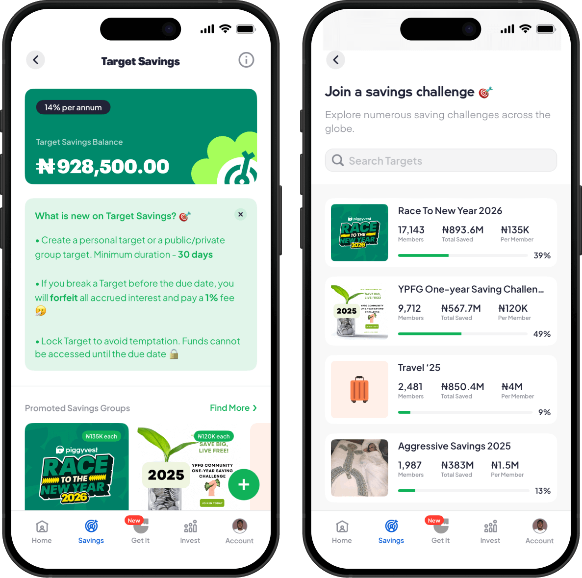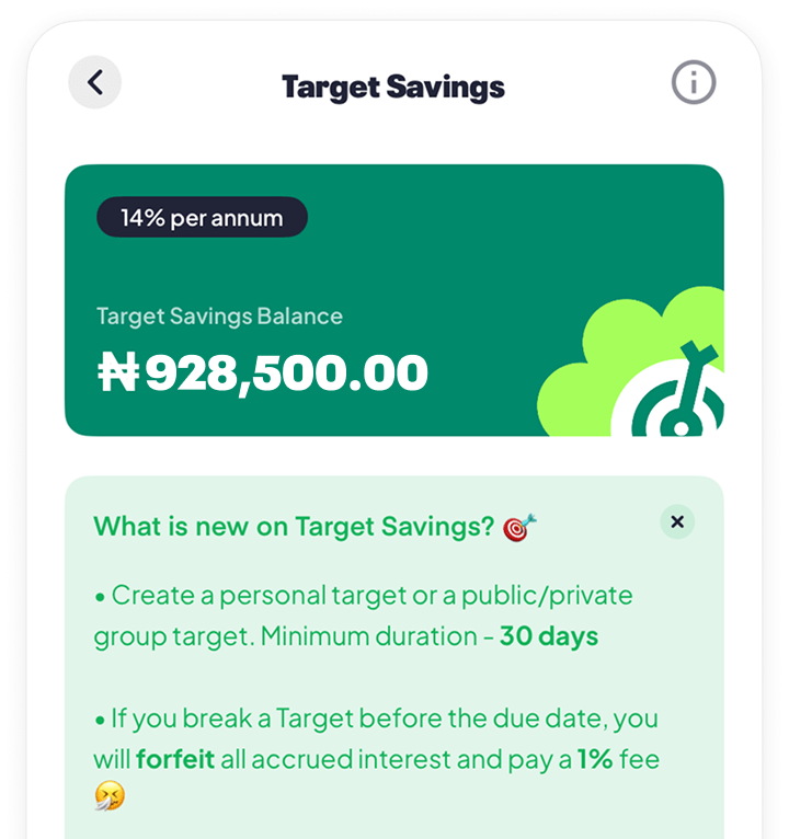 Customise the rules and duration of your target savings as you wish. From public mode, automated savings, to multiple targets, you’re in control.